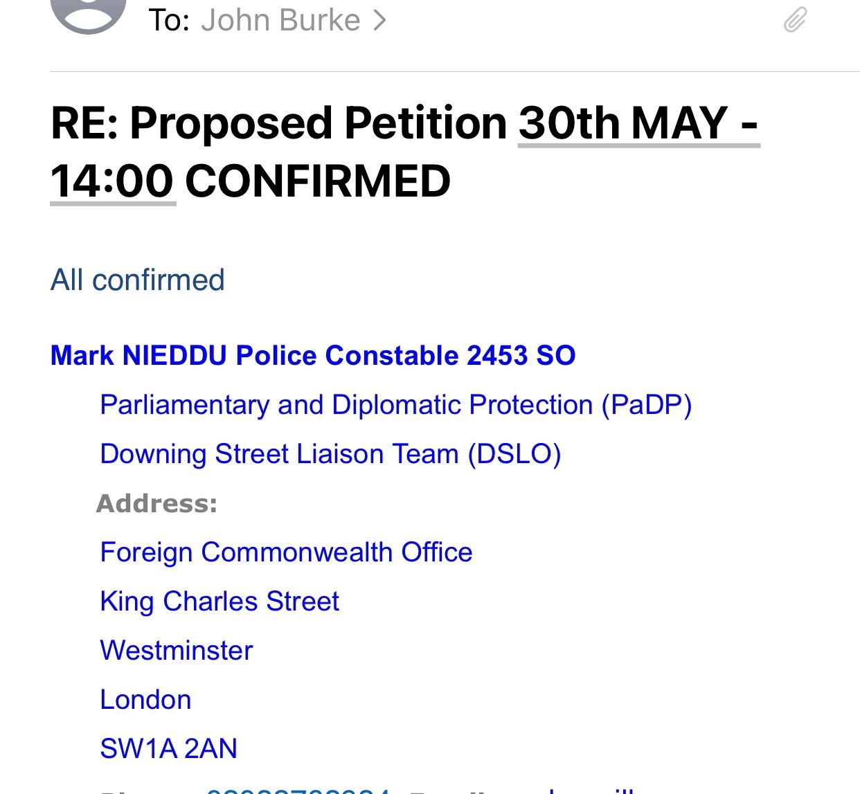 UPDATE: Demo and Petition confirmed by Diplomatic Police Unit for 14:00 on Thursday 30th May 2024.